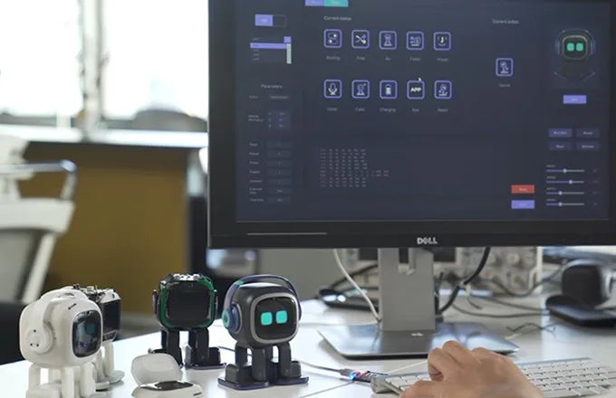 Built with multiple sensors and cutting-edge techs, Emo is a cool desktop AI robot pet with character that can self-explore the world and react to you with 1000+ faces and movements.